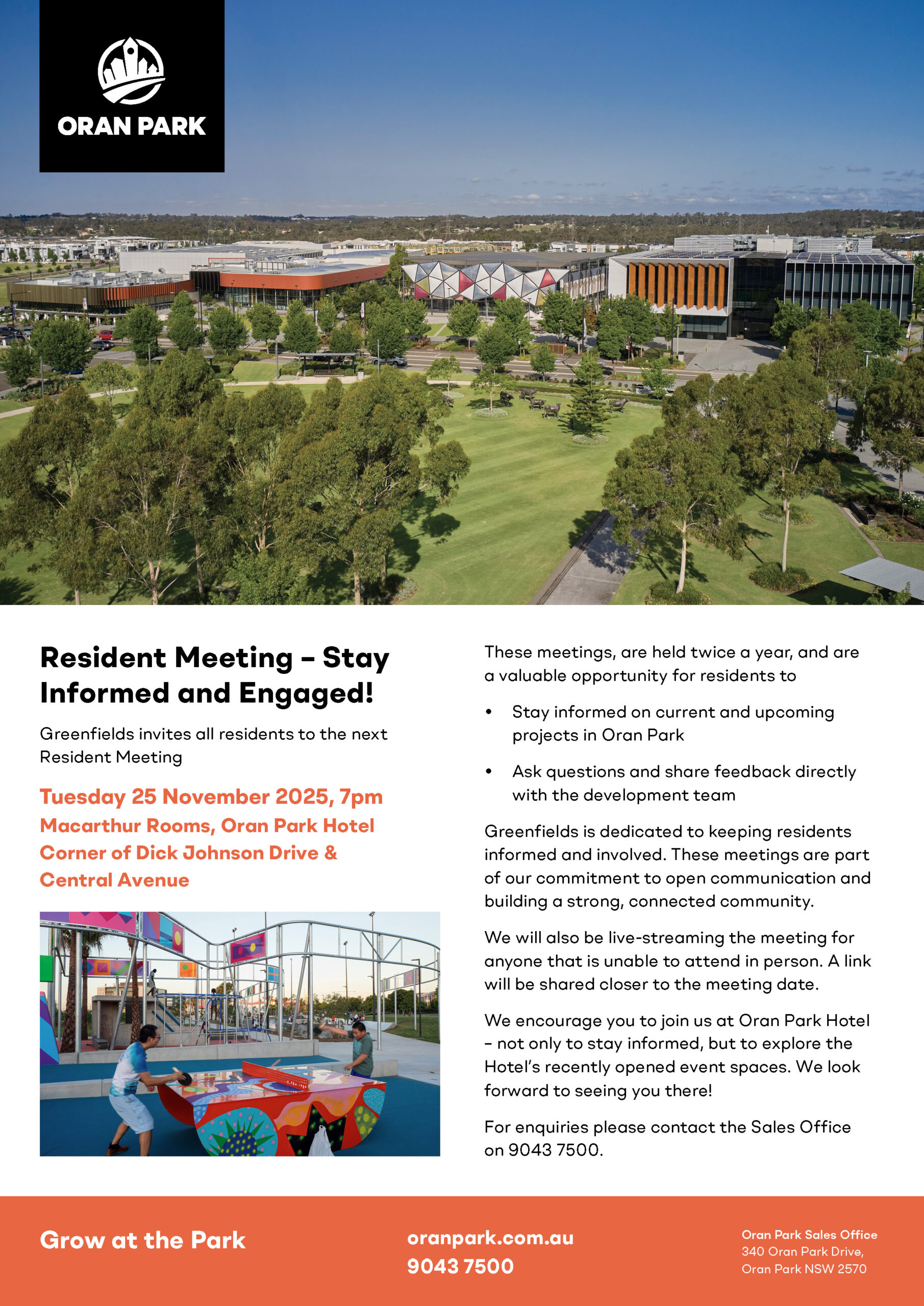 Location: Macarthur Rooms, Oran Park Hotel, Corner of Dick Johnson Drive & Central Avenue